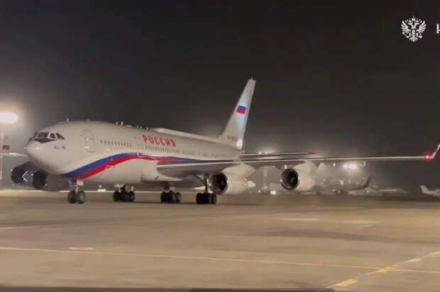 «Борт президента России в аэропорту Бишкека Манас», - говорится в сообщении.
