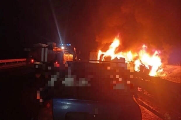 Затем он столкнулся с автомобилем DAF с полуприцепом. После грузовик съехал в кювет и загорелся.