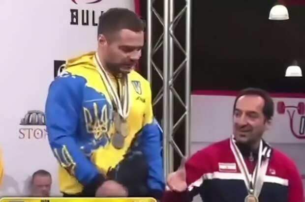 Пауэрлифтер из Украины Чупрынко завоевал победу на чемпионате мира по пауэрлифтингу в ЮАР. В ходе церемонии награждения иранец Месфоруш, занявший третье место, попытался поздравить победителя, но он демонстративно отмахнулся.