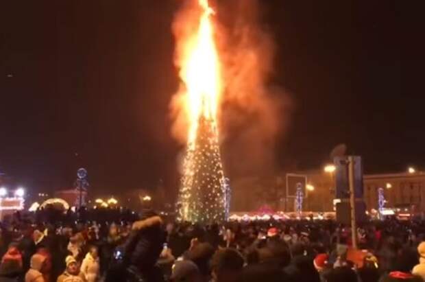 Неудачный запуск петарды мог стать причиной возгорания новогодней елки на площади в Южно-Сахалинске.
