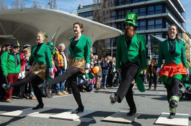 В этот день принято облачаться в зеленый цвет, на улицах устраиваются парады, театрализованные представления и танцы, играет ирландская фолк-музыка, люди посещают пабы.