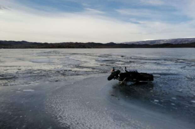По информации ведомства, в субботу рядом с мысом Уляхта в полынью ушел мотоцикл Harley.