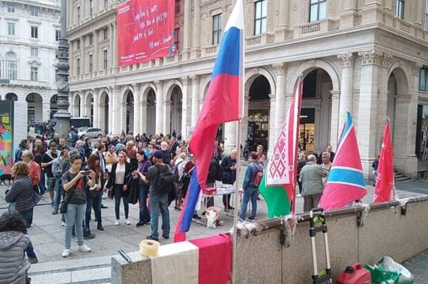 Освободить Италию от господства Соединенных Штатов и Евросоюза». У митингующих были флаги РФ, Белоруссии и Донецкой народной республики.Люди почтили память двух граждан Италии, которые погибли в боевых действиях в Донбассе против ВСУ. На транспаранте участников было написано: «Генуя помнит. Эди Онгаро и Элия Путцолу, мученики за свободу народов».