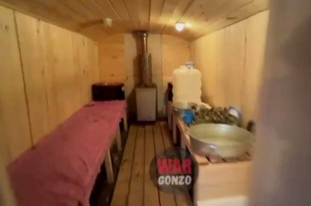 Ранее мобилизованный из Новочеркасска показал, как организован быт их подразделения недалеко от передовой. Он похвастался баней, которую солдаты построили при помощи подручных материалов и ящиков от боеприпасов.