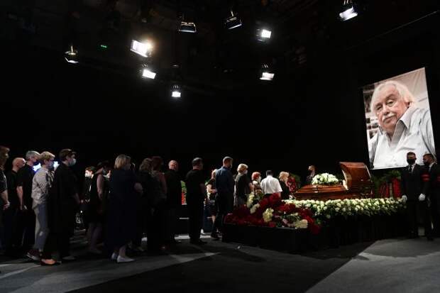 Церемония проходит в 4-й студии телецентра. Проститься с журналистом пришли его коллеги и поклонники.
