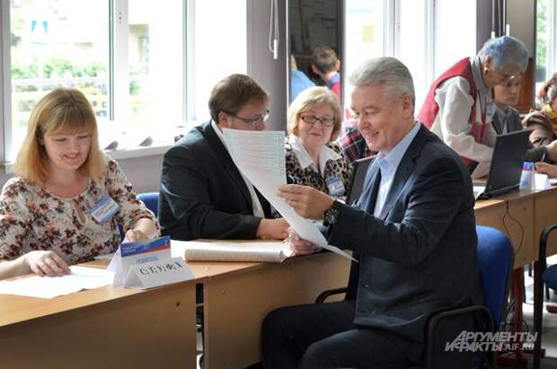 На участке, расположенном в здании школы № 1241 Прес­ненского района, проголосовал мэр Москвы Сергей Собянин.
