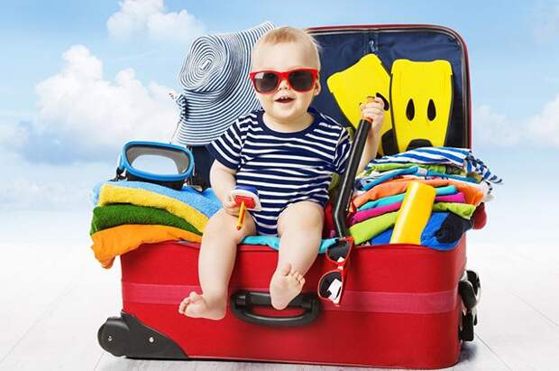 На случай внезапной простуды или гриппа возьмите с собой противовирусное средство на основе интерферона, которое подходит детям с рождения, а также беременным и кормящим женщинам.Положите в сумку безопасное для детей средство от загара с максимальным фактором защиты, одну или две панамы с широкими полями, шапочку для плавания, солнечные очки и как можно больше светлых хлопковых футболок с коротким и длинным рукавом — они защитят плечики и спину ребёнка от солнца. Возьмите с собой плавательный круг и нарукавники (на море они стоят дороже) и большое мягкое полотенце, в которое будете заворачивать ребёнка после купания.