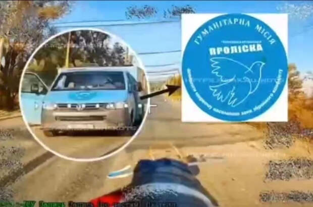 На опубликованном военным журналистом видео запечатлено, как российский дрон приближается к едущему по дороге автомобилю, но заметив на нем эмблему украинской гуманитарной миссии «Пролиска», пролетает мимо.