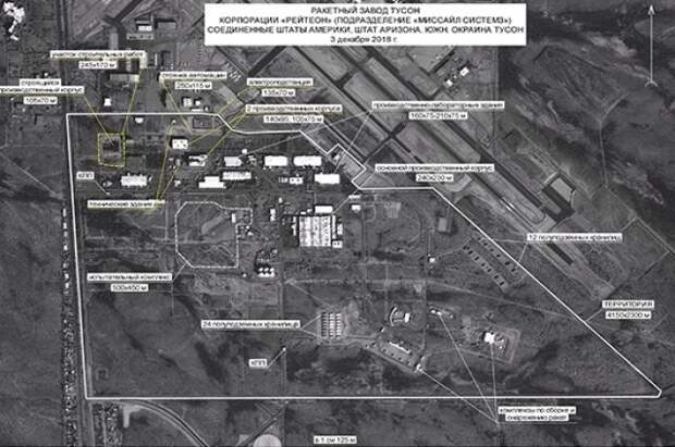 Минобороны РФ обнародовало спутниковый снимок, на котором запечатлено предприятие корпорации Raytheon (США), где еще два года назад началась подготовка к производству оружия, запрещенного Договором о ликвидации ракет средней и меньшей дальности (ДРСМД).