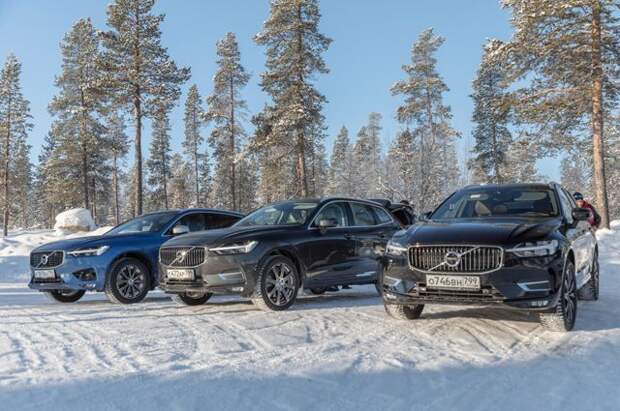 Мы же проверяли поведение не покрышек, а автомобилей. На первом озере была расчерчена ветвистая трасса, имитирующая обледенелую дорогу. А на втором находилась широкая площадка для тестирования работы электронных помощников движения. Volvo XC60 были обуты в липучки и в шиповки. Причем на лед выкатились как бензиновые, так и дизельные версии автомобилей.