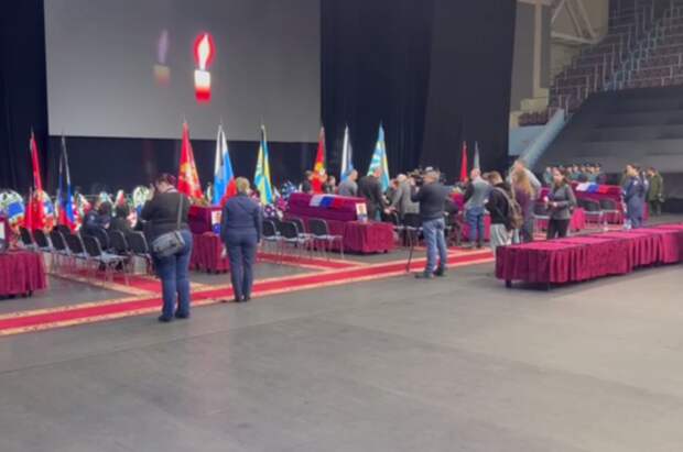 Жители Оренбурга собрались в спортивно-культурном комплексе «Оренбуржье», чтобы попрощаться с погибшими членами экипажа самолета Ил-76. Борт был сбит под Белгородом украинскими военными.