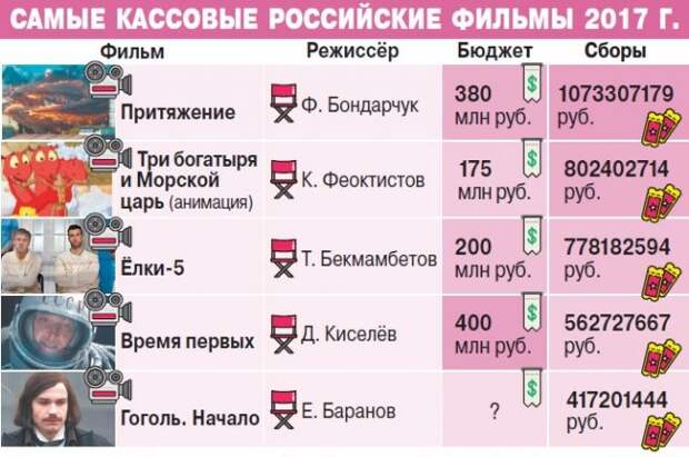 Ближе к Новому году выйдут «Ёлки новые», фэнтези «Легенда о Коловрате» режиссёра И. Шурховецкого и лента про баскетбол «Движение вверх» режиссёра А. Мегердичева с внушительным актёрским составом: В. Машков, С. Гармаш, А. Смольянинов.