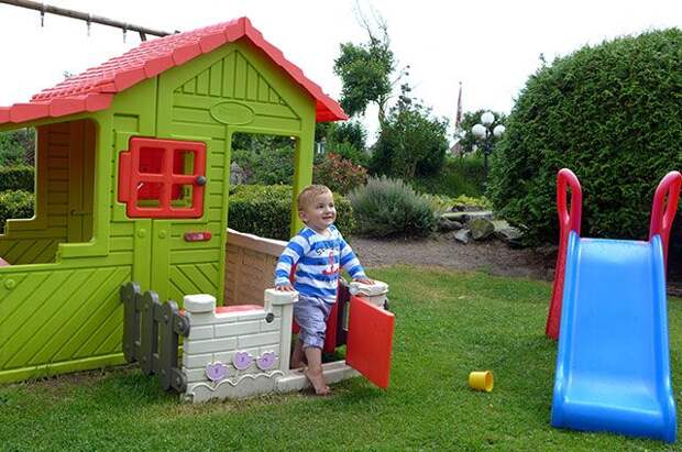 Если ваши дети ещё малы (до 5–6 лет), площадка для их игр должна располагаться так, чтобы её было видно из дома (лучше из кухни).