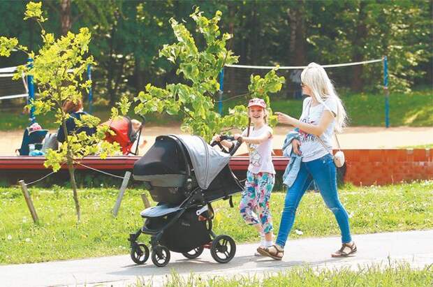 В выходные здесь людно – насчитала 4 площадки для пляжного волейбола, на каждой идёт игра. Команды разные – играют и подростки, и постарше, и даже люди преклонного возраста. Есть песочный корт для любителей бадминтона. «Как здорово, что в парке можно разными видами спорта заняться: вот вы на велосипеде катаетесь, я в бадминтон играю, и обеим хорошо», – радуется местная жительница Ирина К. Тут же недалеко спортивные комплексы с уличными тренажёрами, верёвочные городки для малышей. Одних детских площадок насчитала 5. Благоустройство парков – важная составляющая программы «Мой район». Отдыхающие уже принимают солнечные ванны у озера. Целые утиные семейки смело форсируют акваторию, не боятся ни людей, ни катамаранов. Вокруг озера стоят удобные скамейки-лежаки. Сама попробовала, прилегла, закрыла глаза и чуть не уснула. Чем не санаторий с лечебным сном под щебет птиц, плеск воды, даже голоса здесь звучат тише – их заглушают деревья.