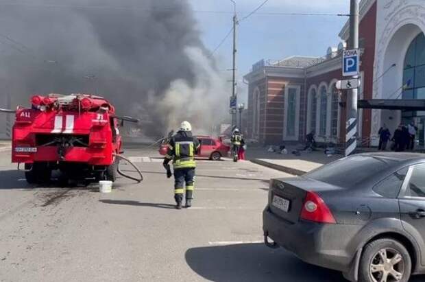 «В районе железнодорожного вокзала в Краматорске, где проходит эвакуация местного населения, был нанесён ракетный удар.