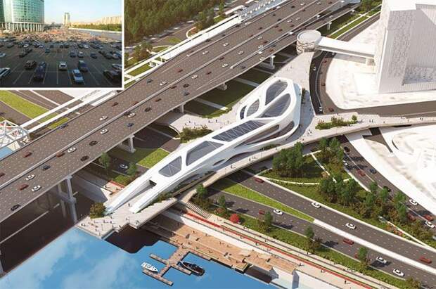Пешеходная зона объединит Пресненскую и Шелепихинскую набережные, протянувшись от небоскрёбов «Москва-Сити» до линейного парка. А воздушный мост-галерея с прозрачными стенами и крышей свяжет станцию Московского центрального кольца (МЦК) «Деловой центр», станцию метро «Международная», бизнес-центр и Пресненскую набережную. У моста будет четыре выхода, а путь от платформы МЦК до «Москва-Сити» сократится вдвое.