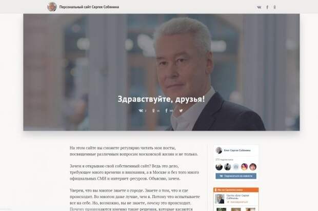 Столичный градоначальник Сергей Собянин анонсировал на странице в соцсети ВКонтакте запуск собственного сайта, где собирается делиться с жителями Москвы мнением о различных аспектах городской жизни.