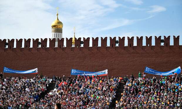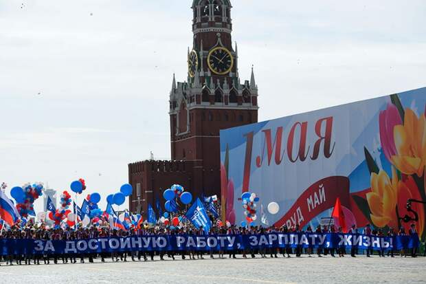 Демонстрация, посвященная Празднику весны и труда, проходит в Москве на Красной площади. По данным ГУ МВД в шествии участвуют около 130 тысяч человек.