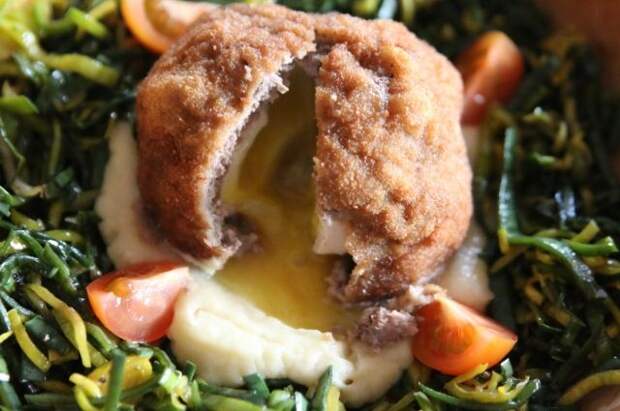 Отличное горячее и сытное шотландское блюдо готовится очень быстро, особенно если у вас есть уже готовый фарш. Главное сделать так, чтобы яйцо не повредилось, и его желток не загустел слишком сильно. Секреты раскрывает шеф-повар ресторана «Шотландская клетка» Юрий Ламонов: