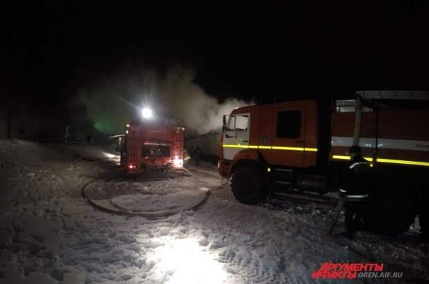 В 21:29 пожару был присвоен третий ранг. Горение происходило на площади 1200 квадратных метров. На месте пожара работают 66 человек личного состава, 21 единица техники.