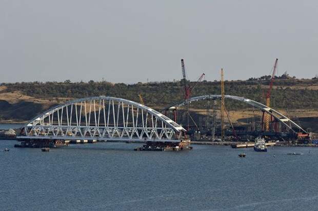 После завершения работ по установке арки железнодорожного моста плавучие опоры будут возвращены к технологической площадке, где ждет своего часа арка автомобильного моста. Операция по ее доставке и установке должна состояться в сентябре.