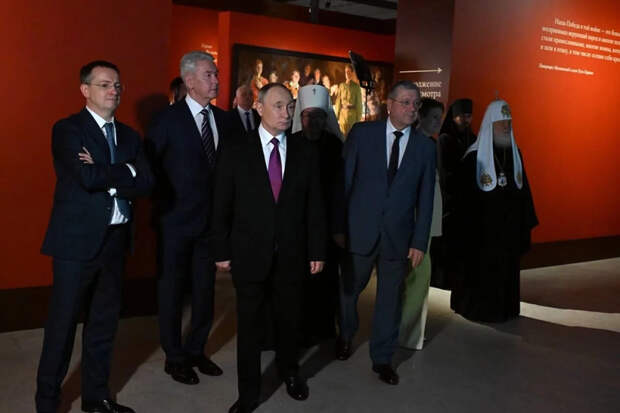 Российский лидер Владимир Путин, мэр Москвы Сергей Собянин и патриарх Московский и всея Руси Кирилл посетили выставку «Великая Победа. Россия — моя история» в Центральном выставочном зале «Манеж». Об этом в своем Telegram-канале рассказал столичный градоначальник.