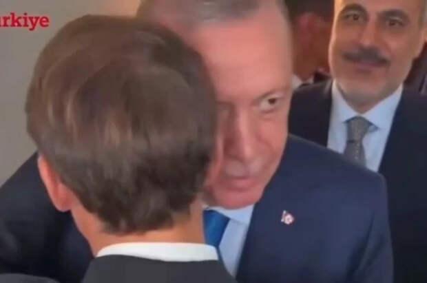 «Неловкая встреча Эрдогана и Макрона. Эрдоган шутит, что Макрон иногда чувствует себя хорошо», — прокомментировал видео журналист.