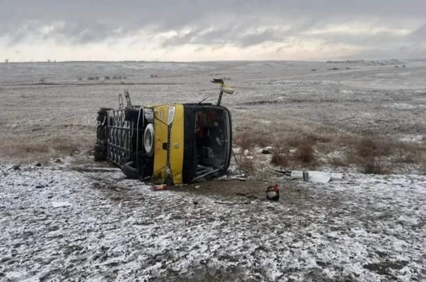По предварительным данным, водитель автобуса не справился с управлением из-за неблагоприятных погодных условий, что привело к съезду с дороги и опрокидыванию транспортного средства.
