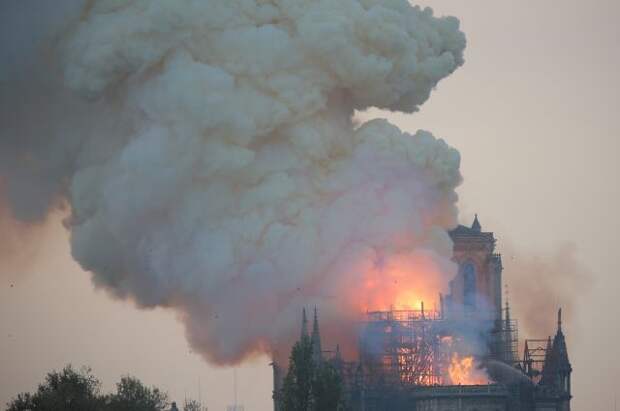 В настоящий момент они и само здание охвачены огнем. По последним данным, у собора в результате возгорания обрушился шпиль.Мэр Парижа Анн Идальго обратилась в Twitter к гражданам с просьбой не заходить за установленное в районе собора оцепление.
