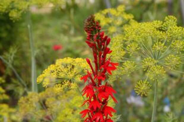 А любисток? Конечно, размеры этого пряноароматического растения существенно зависят от того, в каких условиях он растет, но при благоприятных обстоятельствах он может без труда вымахать выше двух метров. Такой Гулливер способен напугать любого владельца скромного земельного надела. А ведь на Руси издавна считалось, что любисток должен расти на каждом подворье – к счастью. Что если выйти из положения, посадив его в компании с... хвойными, например, с самыми обычными, ничем не примечательными туями? Гигант с желтыми зонтиками соцветий будет весьма эффектно выглядеть на фоне темной хвои. Да и сами туи рядом с ним покажутся не такими скучными.