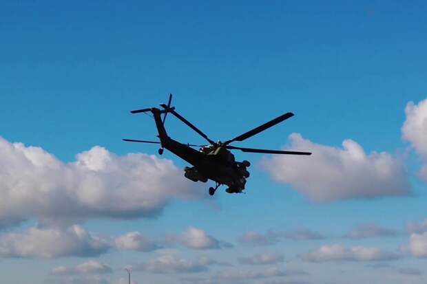 «Экипажи армейской авиации на вертолётах Ми-28Н в составе ударной группы выполнили пуски неуправляемых авиационных ракет по обнаруженным опорным пунктам и живой силе противника на донецком направлении», — говорится в сообщении.