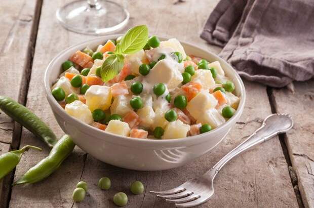 Согласно рекомендациям ВОЗ, человек не должен получать больше 2-3 грамм трансжиров в день (не более 1% суточной нормы общего энергопотребления). В 100 граммах майонеза, которые мы положили в салат (условно на 5-6 человек), содержится минимум 30 грамм трансжиров. Это по 5-6 грамм на человека: превышение нормы ВОЗ в 2-3 раза.