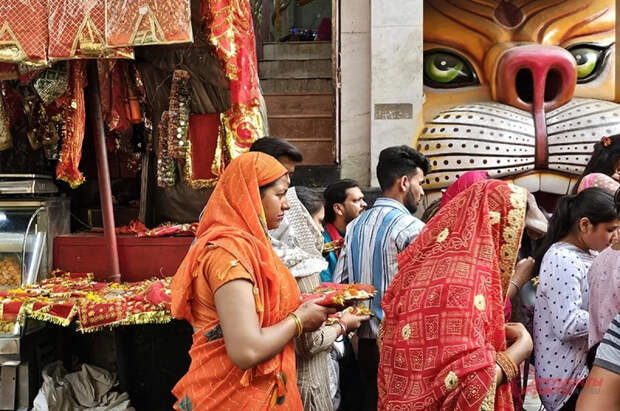 У дома пожилой Гангабаи установили погребальный шатёр, а саму её одели в церемониальное сари для прощания.