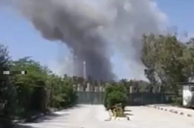 На кадрах заметен густой черный дым, который поднимается со стороны прилетов боеприпасов.