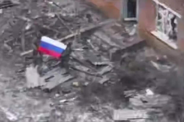 Канал опубликовал кадры с российским флагом, развернутым бойцами в освобожденном поселке.