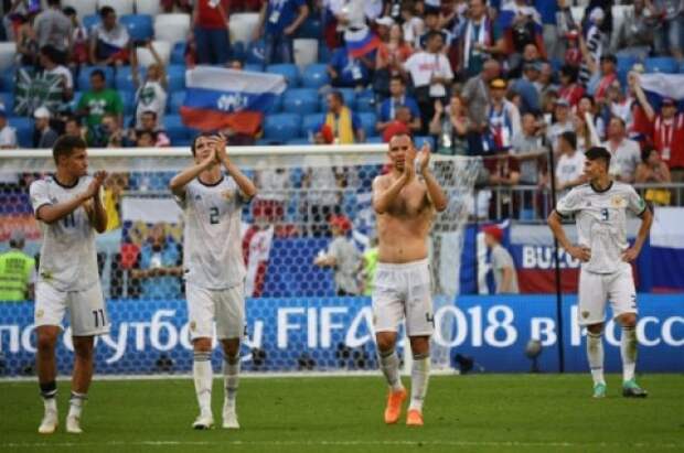 На игру с командой Уругвая россияне вышли в белых футболках.Российская сборная выиграла на ЧМ-2018 встречи с командами Саудовской Аравии (5:0) и Египта (3:1), но проиграла Уругваю (0:3) и занимает второе место в группе А.