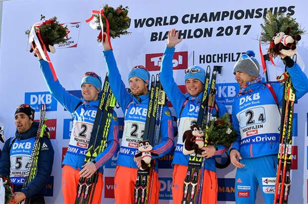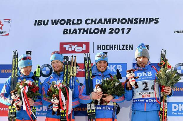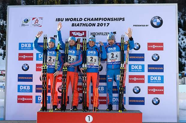 Мужская сборная России по биатлону выиграла золото чемпионата мира в австрийском Хохфильцене.