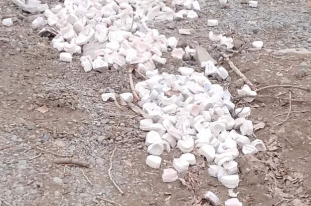 На опубликованных кадрах запечатлены зубные слепки у контейнерной площадки без упаковки и признаков правильной утилизации.
