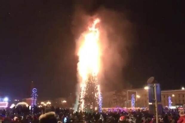 Дерево высотой 25 метров загорелось в разгар празднования Нового года, после часа ночи по местному времени.
