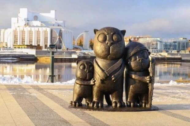 В Великом Новгороде на набережной Александра Невского установили новую скульптуру «Три кота с деревянной сабелькой», созданную по мотивам работы художника Васи Ложкина. Об этом сообщил губернатор Новгородской области Александр Дронов и поделился фотографиями арт-объекта.