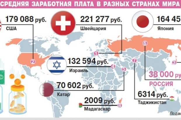 Средняя заработная плата в разных странах мира. Инфографика