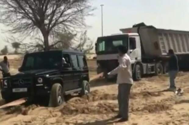 Наследный принц и сын эмира Дубая Хамдан ибн Мохаммед Аль Мактум помог водителю застрявшего в песке грузовика.