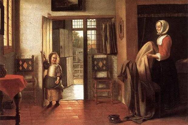 В XVII веке понежиться на белоснежных простынях мог себе позволить уже и средний класс. Бельевой, надушенный лавандой шкаф — святая святых голландского дома. Простыни в нём сложены иногда «по месту изготовления», скажем, отдельно стопочка совсем драгоценных, из Ост-Индии. Белья было много. По воспоминаниям, один амстердамский книготорговец запирал в своём шкафу шестьдесят простыней, тридцать скатертей и более трёхсот столовых салфеток.