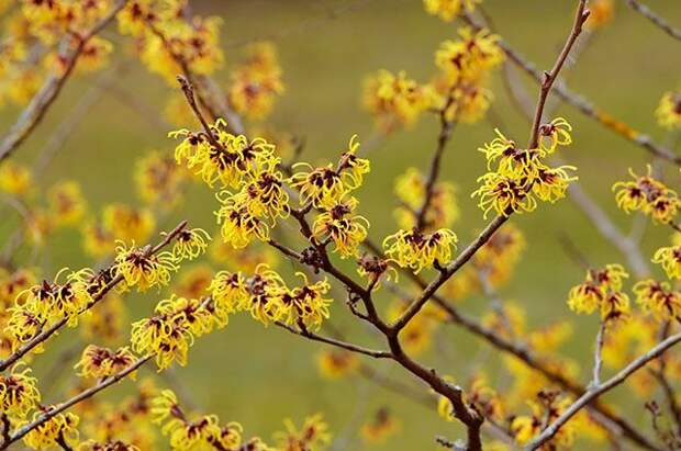 Если говорить о декоративноцветущих кустарниках, то на первом месте по срокам цветения окажется чужеземный гамамелис.