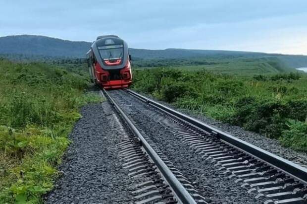 Пригородный поезд сошел с рельсов на юге Сахалина в результате размытия участка железной дороги сильными дождями, пострадавших нет, сообщила пресс-служба Дальневосточной железной дороги.