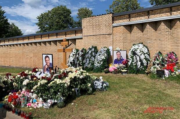 На кадрах Светлана в черном брючном костюме с цветами в руках и в сопровождении детей идет по аллее Троекуровского кладбища к могиле Юрия Шатунова.