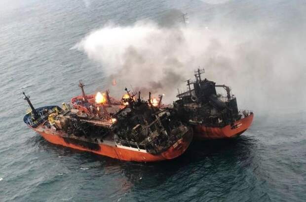 Инцидент произошел 21 января за пределами территориальных вод РФ. При передаче топлива с одного судна на другое произошел взрыв, а затем вспыхнул пожар.