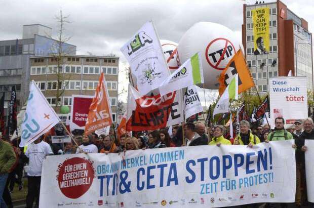 Демонстранты несли транспаранты с лозунгами, призывающими Германию отказаться от соглашения: «Остановите ТТИП» и «Не давайте ТТИП шансов».Добавим, что демонстрация прошла накануне встречи в Ганновере президента США Барака Обамы с канцлером ФРГ Ангелой Меркель, премьер-министрами Великобритании Дэвидом Кэмероном и Италии Матео Ренци и президентом Франции Франсуа Олландом.