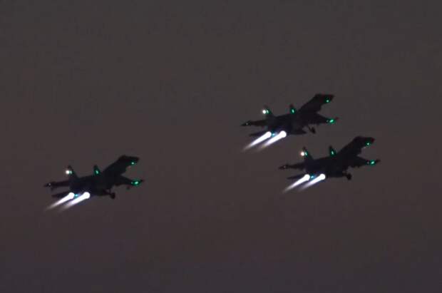 «Красивые кадры выполнения самолетами Су-35с ВКС России авиационного сопровождения литерного самолета на пути следования из Объединённых Арабских Эмиратов в Саудовскую Аравию», - пояснили в ведомстве под опубликованной видеозаписью.