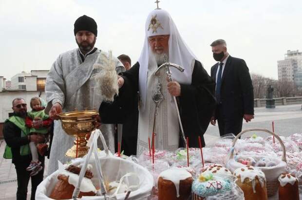 Патриарх Московский и всея Руси Кирилл освятил куличи, пасхи и яйца у храма Христа Спасителя. Об этом сообщает РИА Новости.